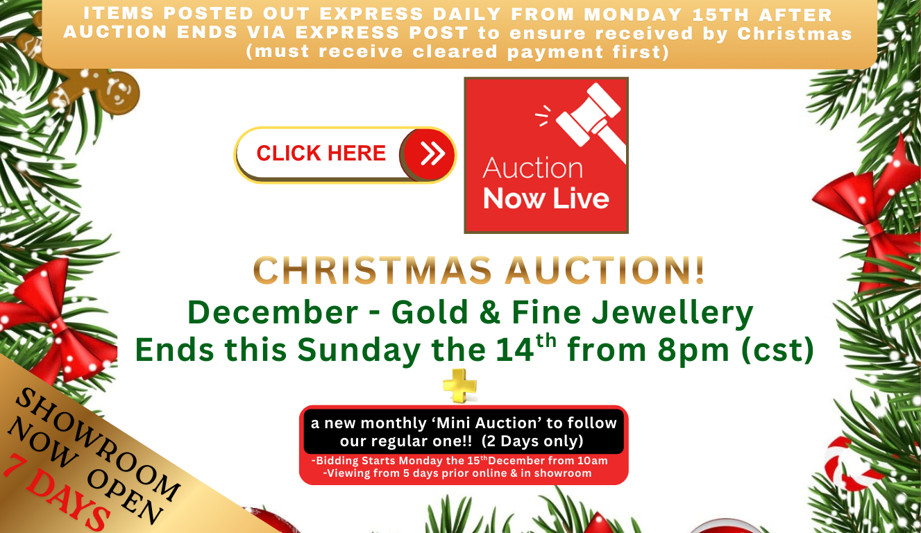 We aim to provide an auction environment that is welcoming and easy to use for our customers both locally and Australia wide. As qualified jewellers, gemmologists & current members of both the GAA (Gemmological Association of Australia) & JAA (Jewellers Association of Australia) we test & inspect every piece we put up for auction and offer a 100% guarantee that each item is ‘as described’ or your money back. This guarantee and our experience in the Jewellery industry is something that sets us apart from other auction houses.
